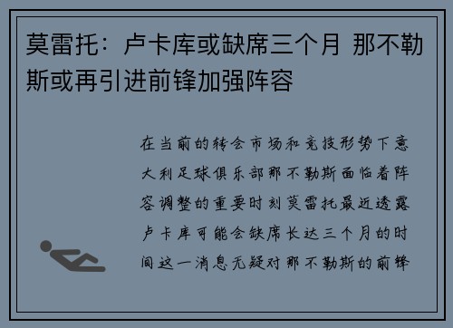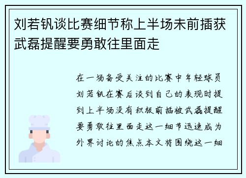 本文将从帕齐尼谈国米表现、马库斯未庆祝进球、影响队友、巴斯托尼送任意球成隐患等多个方面展开深入分析。在帕齐尼对国米的表现进行评价时,分析了球队当前的状态以及其中存在的一些问题;同时,马库斯未庆祝进球的行为也引发了不少争议,可能会影响到队友的心理状态;此外,巴斯托尼在送出任意球时所表现出的隐患也值得关注。文章将结合这些问题,探讨它们对国米队伍整体氛围和表现的影响,并给出相应的分析与建议。1、帕齐尼谈...